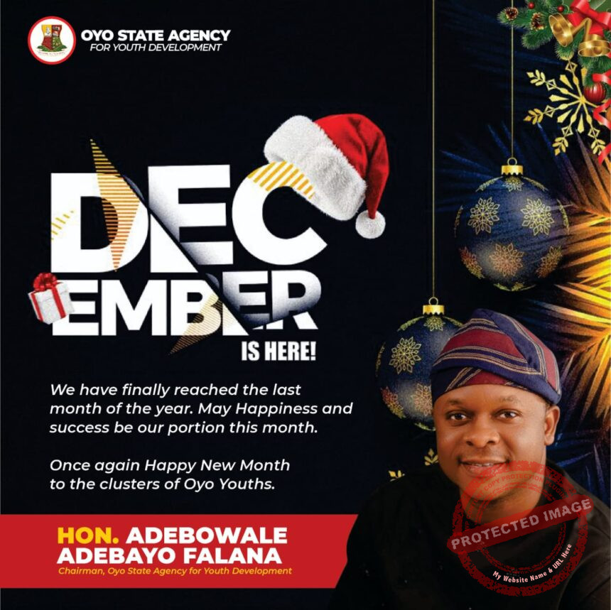 The Chairman of the Oyo State Agency for Youth Development, Hon. Adebowale Adebayo Falana, has extended warm greetings to young people across the Pacesetter state as preparations intensify for the annual “December to Remember” initiative, a month-long series of youth-focused engagements aimed at empowerment, development, and community building.