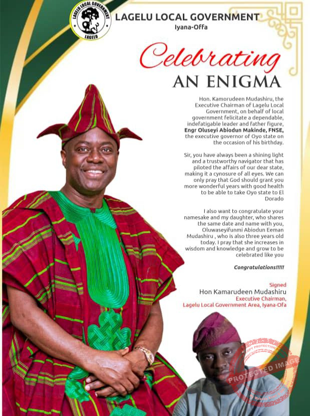 The Executive Chairman of Lagelu Local Government, Hon. Kamorudeen Mudashiru, has extended warm felicitations to Oyo State Governor, His Excellency Engr. Oluseyi Abiodun Makinde, on the occasion of his 58th birthday.