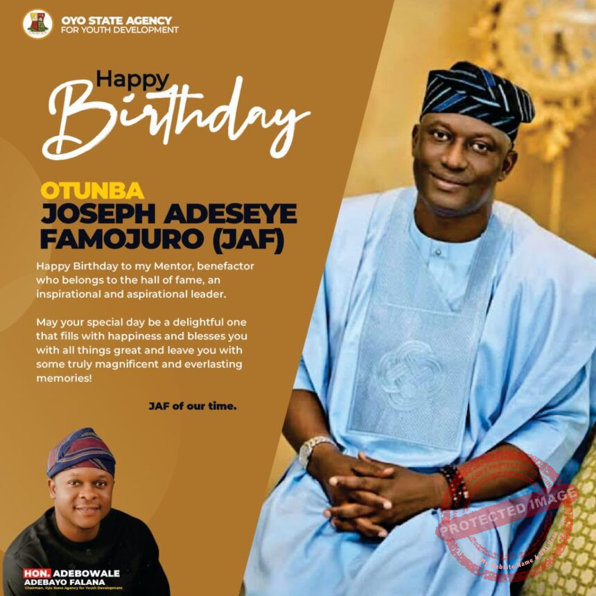 The Chairman of the Oyo State Agency for Youth Development, Adebowale Adebayo Falana, has showered glowing encomiums on the King of Boys and political leader, Otunba Joseph Adeseye Famojuro, as he marks his birthday today, February 14, 2026.