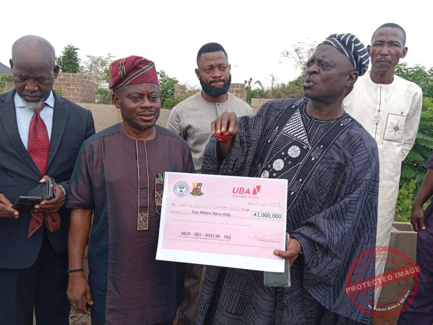 As part of an education and community support initiative, the chairman presented a cheque of ₦2 million to the Awaye Community Development Association. The fund is intended to improve educational infrastructure, promote academic excellence, and support sustainable development within the Awaye community.