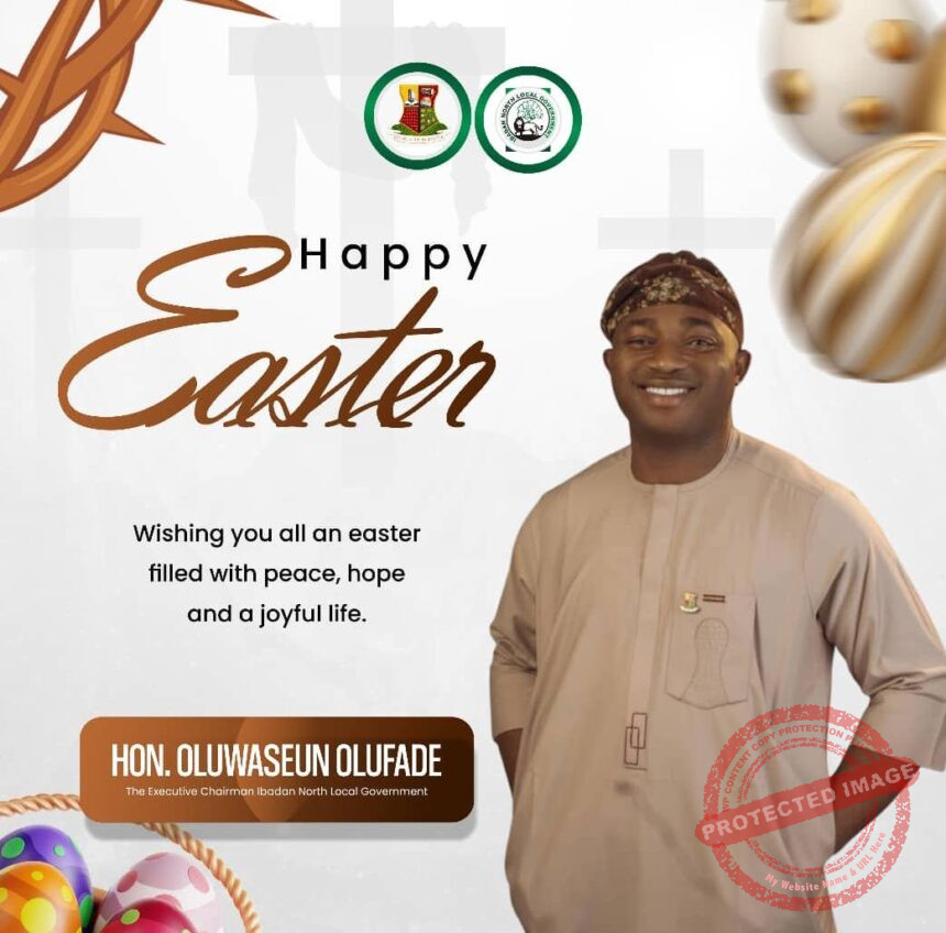 The Executive Chairman of Ibadan North Local Government, Hon. Oluwaseun Olufade, has extended warm Easter greetings to residents of the council area, calling for unity, compassion, and renewed commitment to collective development.