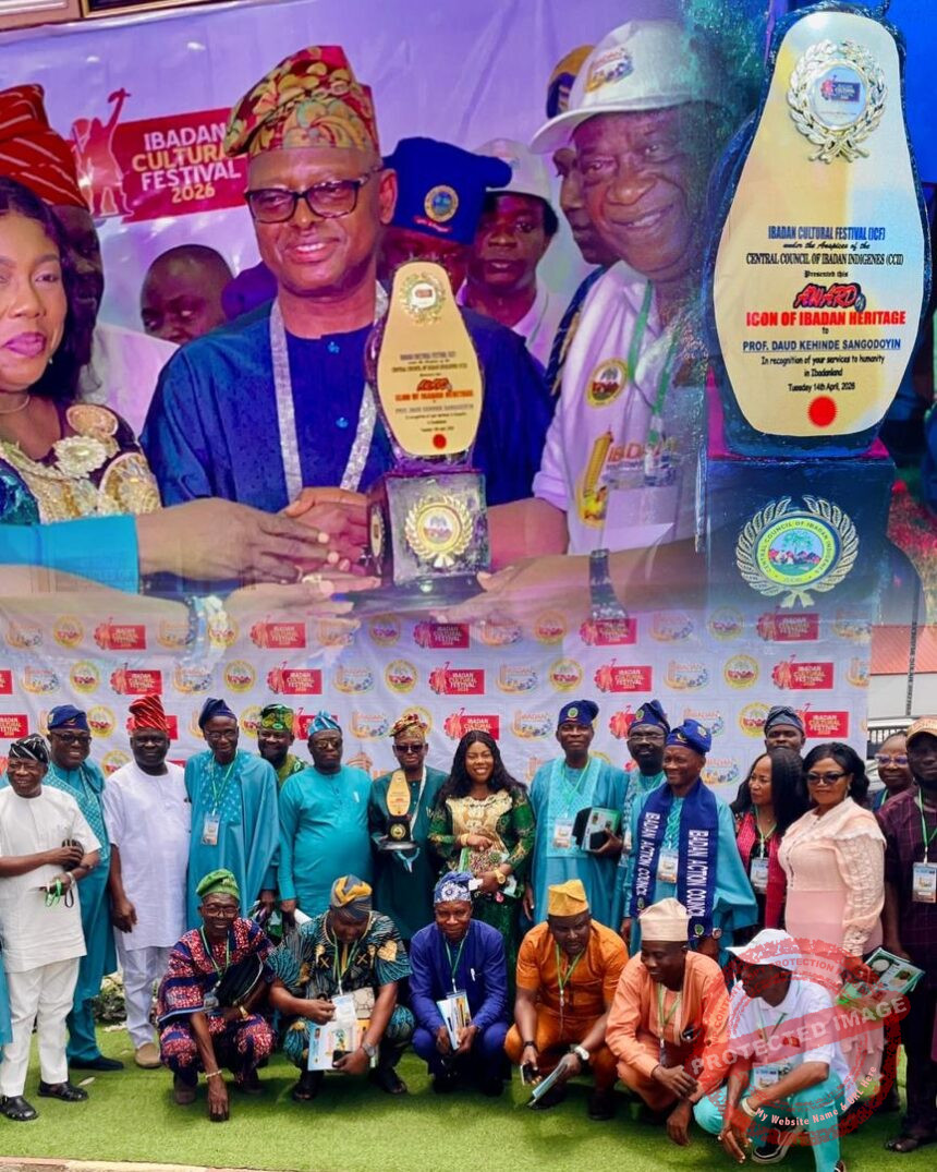 Oyo gubernatorial hopeful and Commissioner for Energy and Mineral Resources in Oyo State, Professor Dahud Kehinde Shangodoyin, has been honoured by the Central Council of Ibadan Indigenes (CCII) with the prestigious Icon of Ibadan Heritage Award in recognition of his outstanding contributions to the growth and development of Ibadanland.